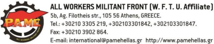 S důvěrou se obracíme na pracující a jejich odbory a zdůrazňujeme sílu organizovaného boje a požadavky, které odpovídají našim moderním potřebám, proti politice monopolů a kapitalistickému barbarství.